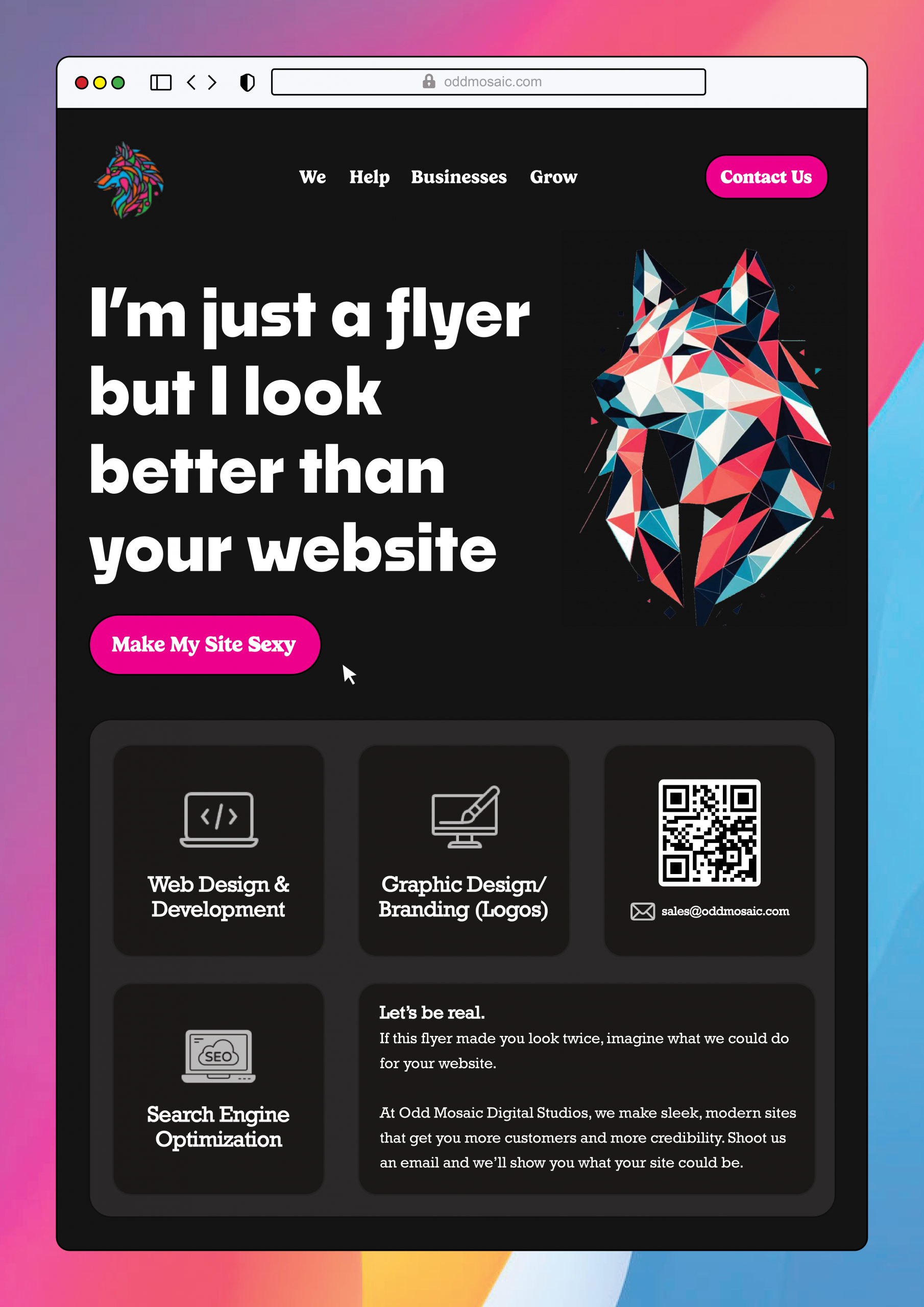Started a company helping small businesses out by giving them a whole rebrand with website design, branding, and SEO, to help elevate their digital presence and make them stand out.